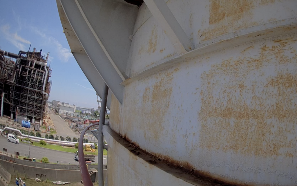 通常の空撮点検ドローンでは撮影許可が難しい空港付近のプラントでもマイクロドローンで屋外のウィンドガードや壁面の錆、内部のGPSや電波が届きにくい場所も撮影可能です。